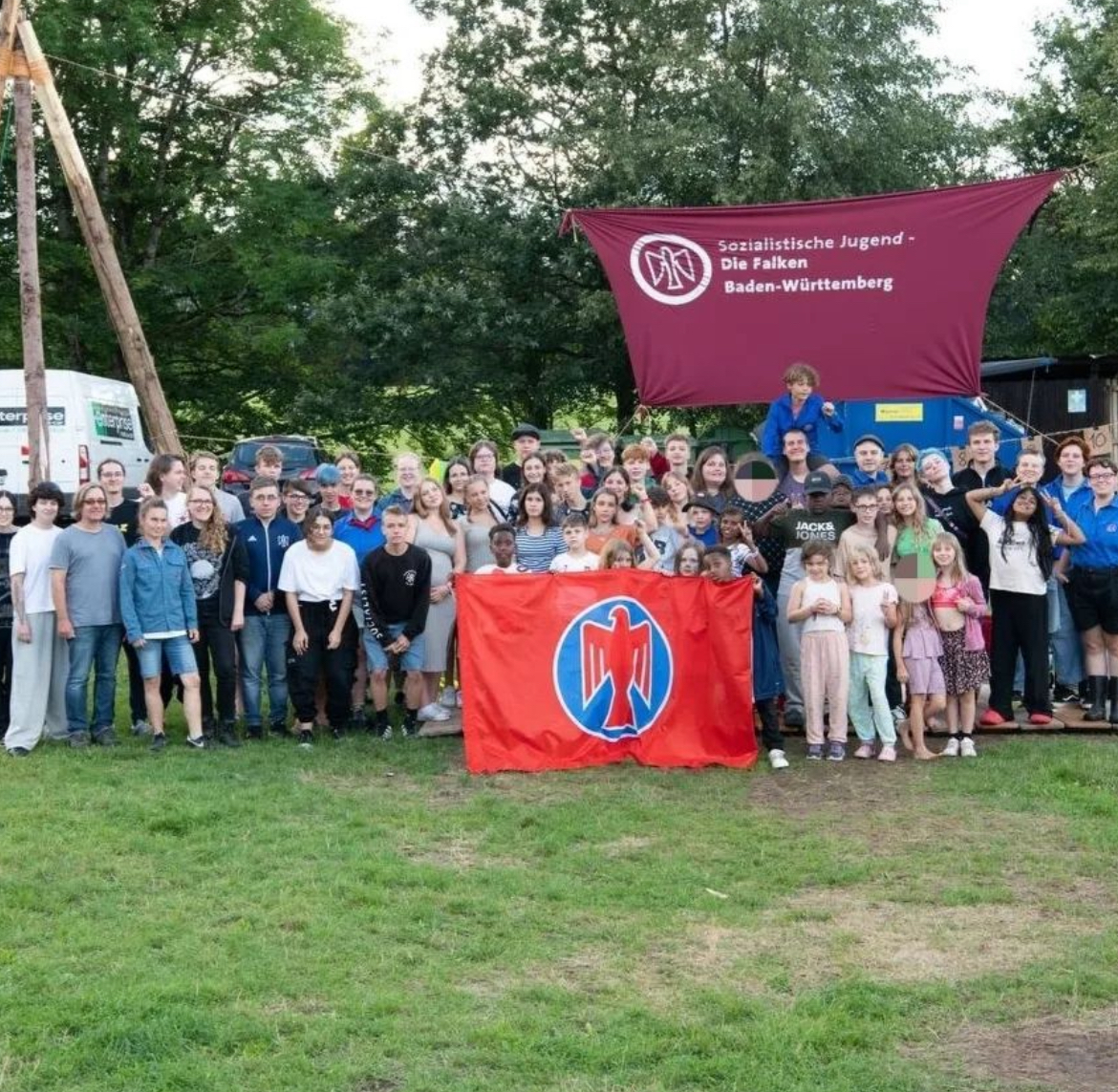 Mit vielen Kindern haben wir Anfang August insgesamt zwei Wochen auf dem Zeltplatz in Ferschweiler verbracht. Gemeinsam waren wir schwimmen, haben Armbänder geknüpft, Stockbrot am Lagerfeuer gegessen und Musik gemacht. Außerdem betrieb eine unserer F-Gruppen einen Kiosk in dem die Kinder selbständig jeden mittag Snacks verkauft haben. Der Inhaltliche Teil kam bei uns natürlich nicht zu kurz, in der Neigungsgruppenzeit hatten wir eine Neigungsgruppe zum Thema „richtig beleidigen“, „psychische Gesundheit“ und eine die sich mit dem Thema „Veganismus“ beschäftigt hat.