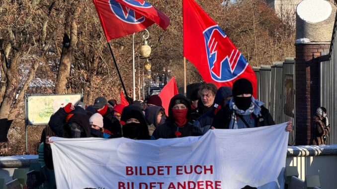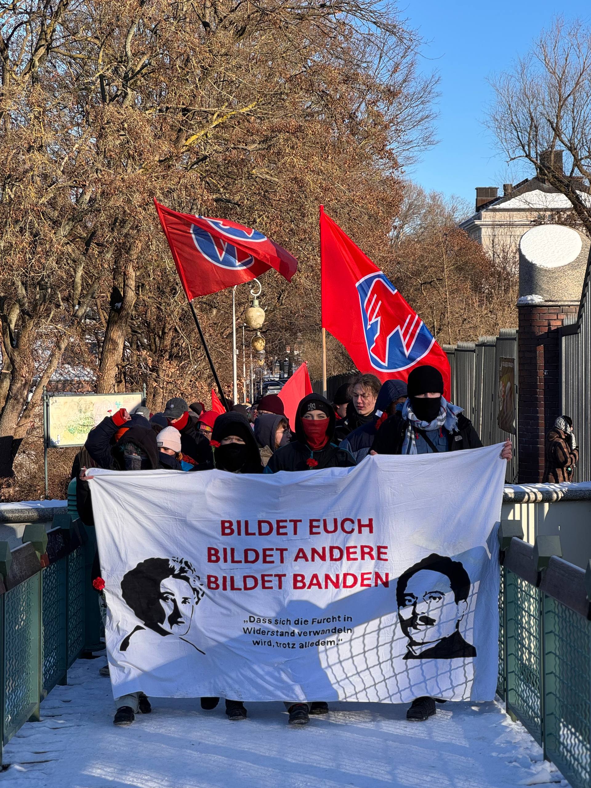 Den emotionalen Höhepunkt bildete der Sonntag, an dem wir im Berliner Tiergarten unsere Gedenkkundgebung für Rosa Luxemburg und Karl Liebknecht abhielten. Gemeinsam haben wir rote Nelken am Landwehrkanal und am Liebknecht-Denkmal niedergelegt, um an ihr Erbe zu erinnern. Den Abschluss des Wochenendes bildete die gemeinsame Rückreise mit allen Genoss*innen vom Berliner Hauptbahnhof.